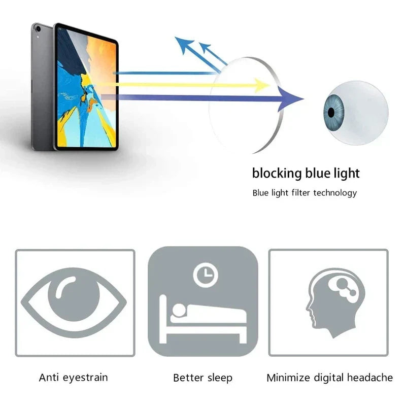 - Protección contra luz azul: las lentes bloquean la luz azul dañina, perfectas para largos períodos frente a las pantallas, reduciendo la fatiga y protegiendo tus ojos.